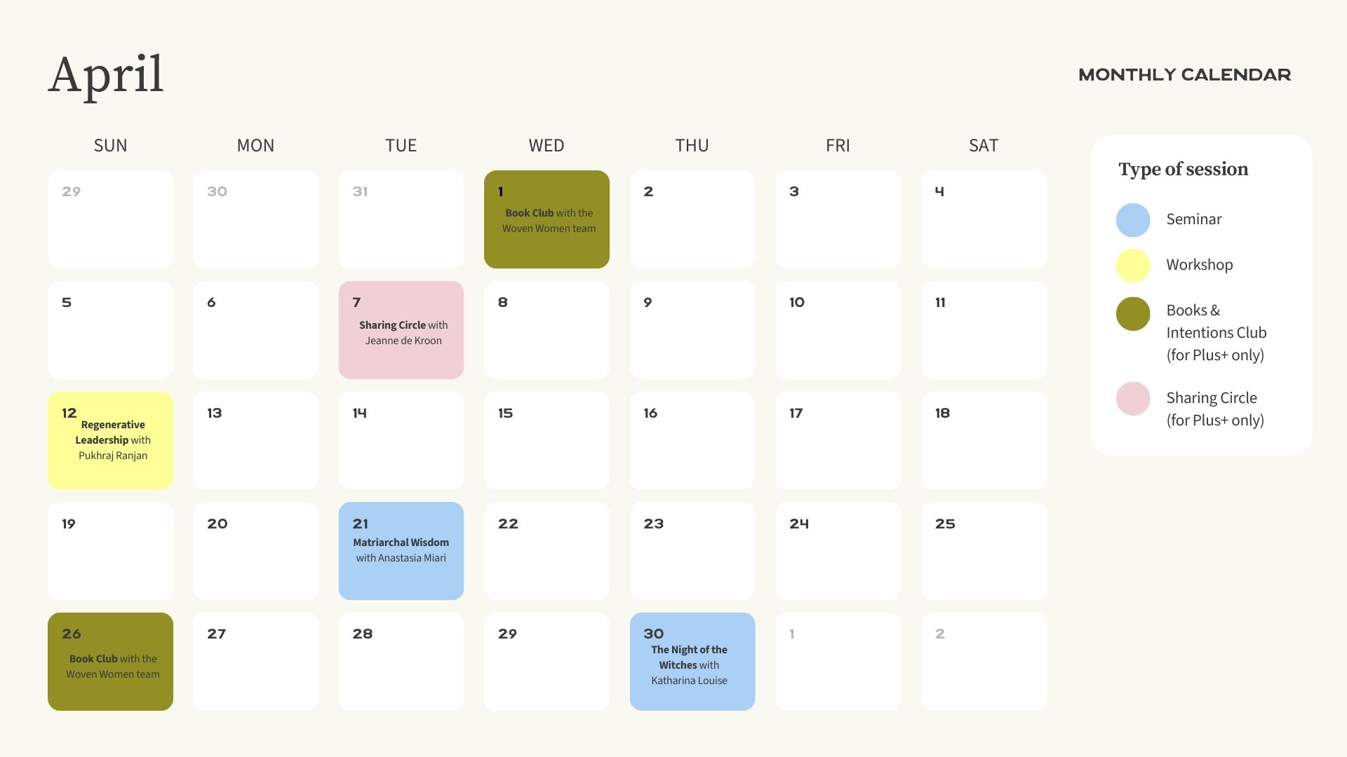 The 'Woven Women Web' unfolds as an ongoing practice, where learning, reflection, and connection are woven together. Join for €65 p/m, cancel anytime.