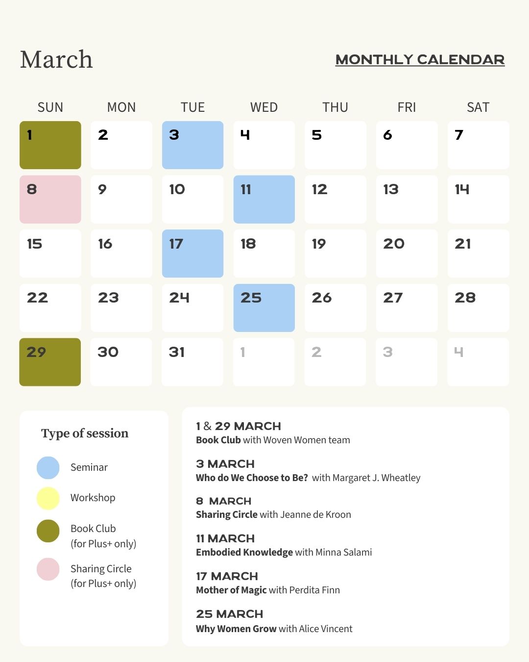 Receive one free session and be the first one to find out about everything that Woven Women has to offer.